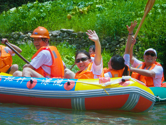 清涼水花飛濺引來女生們的聲聲尖叫,男生們則吼著嗓子大喊爽快。崎嶇的漂流水道驚險刺激,橡皮船橫沖直撞,險些卡在突起的石塊中間,很快就被后續(xù)飛沖下來的橡皮船撞開,猶如一場激烈的水上碰碰車大戰(zhàn)。每到一個水流平穩(wěn)的地方,部分男同事棄船蹲點,準備好滿滿的水,等待著被水流沖下來的同事展開密集的潑水攻勢,女生們力氣不敵男生最終敗下陣來舉白旗投降,有些男同事奮起對戰(zhàn)猛烈潑水,卻也因寡不敵眾輸?shù)脩K烈。