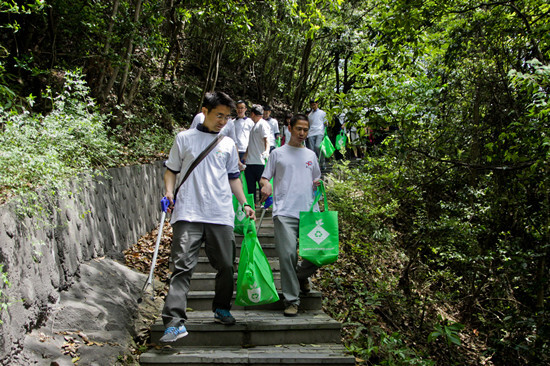 中坡山森林公園位于寧波西部的四明山上,是一個免費對外開放的森林公園,好山好水好空氣,深受寧波老百姓喜愛,周末園內人來人往,非常熱鬧。但比較遺憾的是,公園內步道兩邊飲料瓶、食品包裝袋等垃圾較多,與自然美景很不協調。4月11日,我集團和寧波市外經貿局工會聯合,首次走進中坡山森林公園,開展撿垃圾活動,倡導環境清潔理念,受到游人和當地龍觀鄉政府的肯定。時隔半個月后,我集團聯合寧波中信保公司團委,雙方組織了30多位同事,再次走進中坡山森林公園。
