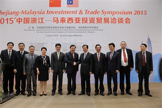 21日,由浙江省貿促會和馬來西亞中華總商會主辦,浙江省國際商會和吉隆坡暨雪蘭莪中華總商會承辦的“2015’中國浙江-馬來西亞投資貿易洽談會”在吉隆坡開幕。開幕式上,浙江省委書記、省人大常委會主任夏寶龍作主旨演講,馬來西亞首相對華特使、馬中商務理事會主席丹斯里•黃家定,馬來西亞貿工部副部長李志亮,中國駐馬來西亞大使黃惠康等分別致辭。中馬相關政要和企業家350余人出席了開幕式。