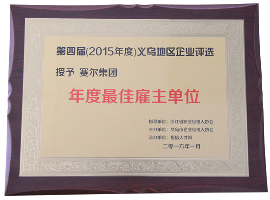 賽爾網訊 近日,由義烏市企業經理人協會主辦、恒信人才網協辦的第四屆義烏地區“最佳雇主”評選活動落下帷幕,我集團摘得2015年度“最佳雇主”獎牌。