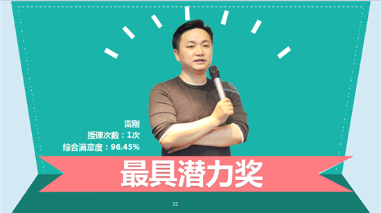 忙碌的一年過去了,賽爾學院不忘感謝那些辛勤耕耘的講師們,精心挑選了禮物作為答謝。根據講師授課次數、課件質量、開發課程次數和學員滿意度等綜合評定,優景公司王穎和優訊公司吳旺龍摘得“優秀講師”桂冠,將微型投影儀收入囊中,集團財務王彬彬、陳萍,人力資源部章衛華榮獲“人氣講師”,東吳龍丹妮被評為“風尚講師”。單證配載部郭云珍憑借提供較多數量和超高學員滿意度的課程,特頒發“黃牛獎”表示鼓勵。優勝公司雷剛榮獲了賽爾學院新設的“最具潛力獎”。