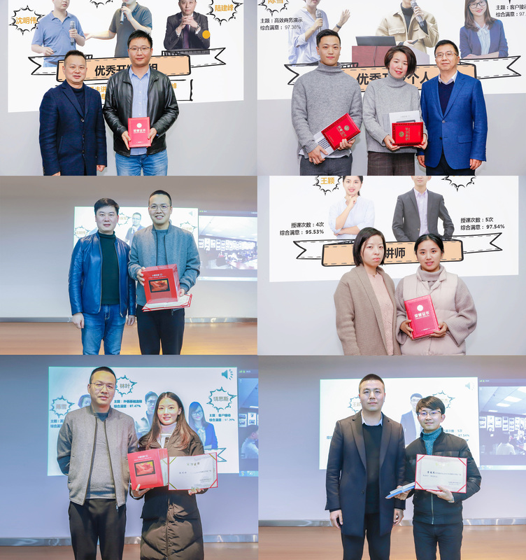 ● 首推學習地圖,學員選課、學院排課更有針對性、計劃性; ● 加強課程開發(fā),總經理牽頭組建十大精干開發(fā)小組,課程質量明顯提升; ● 嘗試主題沙龍,針對熱點痛點難點問題,各路行家華山論劍擦出全新火花; ● 強化師資力量,明確公司高層授課目標,組織更多中高層傳道授業(yè); ● 重視干部培養(yǎng),青云二期(經理班)順利結項。 企宣 集團周報、月報、微信公眾號等各類自媒體繼續(xù)承擔著企宣重任,母親節(jié)、七夕節(jié)、雙十一、圣誕節(jié)等特別企劃活動受到好評,圣誕新年小視頻創(chuàng)下了瀏覽量和留言量的最高紀錄,在此給大家深深一鞠躬。未來我們會爭取給大家奉獻出更多高質量的小視頻,大家敬請期待~ 2. 獲獎名單 講師榮譽榜 ?優(yōu)秀開發(fā)個人 陳雪(優(yōu)訊公司) 林葉(優(yōu)景公司) 饒思斯(優(yōu)騰事業(yè)部) 優(yōu)秀開發(fā)小組 方保軍(優(yōu)達公司) 沈明偉(優(yōu)訊公司) 陸建峰(優(yōu)達公司) 優(yōu)秀講師 王穎(優(yōu)景公司) 李俊杰(優(yōu)訊公司) 獲獎講師 通訊員榮譽榜 企宣先進單位 集團財務管理部 ?優(yōu)景公司 優(yōu)訊公司 企宣先進個人 郭瑩瑩(優(yōu)訊公司) 俞飄飄(優(yōu)騰事業(yè)部) 黃秀秀(優(yōu)鼎公司) 優(yōu)秀通訊員 王鴻雁(優(yōu)越公司) 胡少青(財務管理部) 袁夢思(風控審計部) 盛君霞(優(yōu)訊公司) 胡云再(優(yōu)景公司) 陳旭萍(財務管理部) 章加俊(優(yōu)鼎公司) 曹瀟艷(綜合行政部) 俞丹萍(財務管理部) 朱健如(財務管理部) 章衛(wèi)華(優(yōu)達公司) 3. 聘任儀式 儀式感還是要有的,我們在表彰會上為講師們頒發(fā)了聘書,周玲燕、王穎等44人成為新一年的內部講師。 寧波聘任儀式現(xiàn)場 義烏聘任儀式現(xiàn)場 會議最后,方總對各位講師、通訊員一年來為集團培訓和宣傳工作作出的貢獻表示衷心感謝,他認為,企業(yè)培訓、文化建設和宣傳工作都是企業(yè)軟實力的重要方面,是企業(yè)持續(xù)發(fā)展的動力所在,集團長期重視提升軟實力,重視人才發(fā)展和文化建設,2019年工作富有成效,2020年將堅持創(chuàng)新與提升,繼續(xù)抓好課程開發(fā)、講師提升、干部培訓、宣傳創(chuàng)新等工作,特別要完成寧波總部新大樓企業(yè)文化展廳的建設。2020年是富有挑戰(zhàn)的一年,但更是充滿期待的一年!