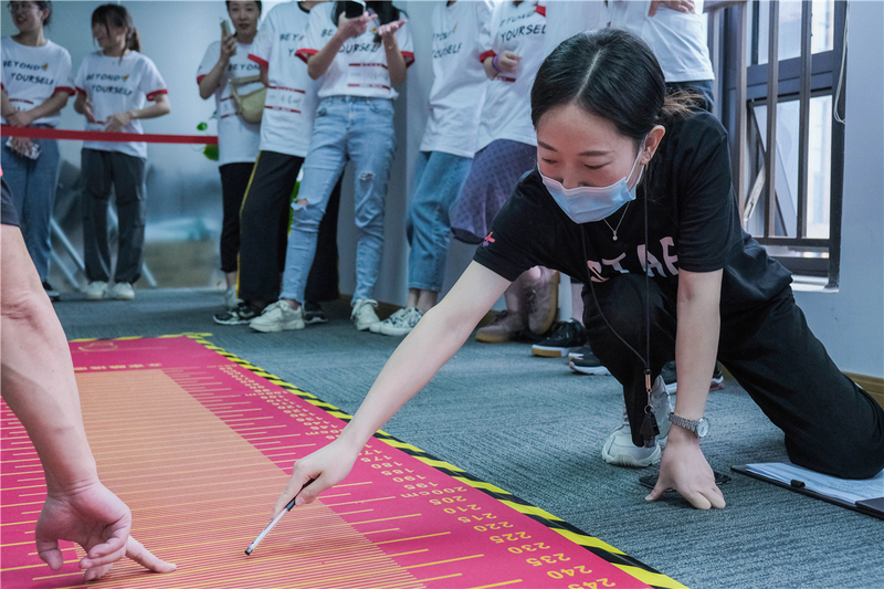 一擲乾坤(套環(huán)) 龍騰虎躍(立定跳遠) 穩(wěn)如磐石(深蹲) 能屈能伸(彎腰過桿)