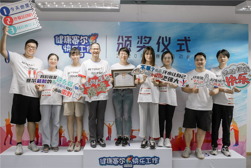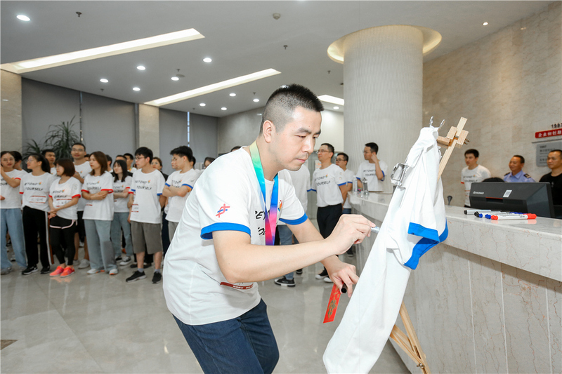 冠軍簽字是本屆運動會新增的環(huán)節(jié),多摸摸這件衣服說不定還能增加點運動細(xì)胞哦