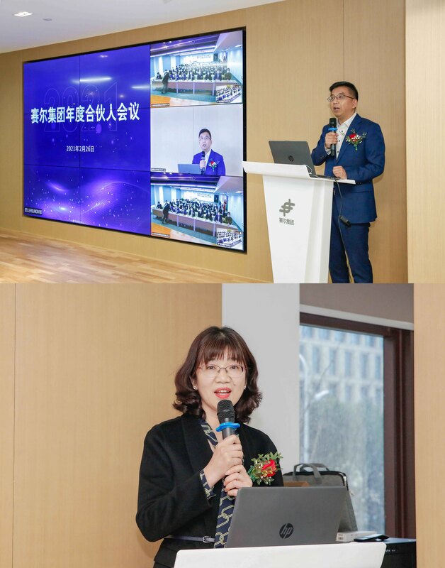 集團董事長徐平炬通報了高管職務整體升級計劃,這個計劃在會前經過高級合伙人充分醞釀、全體合伙人意見征詢,是未來十年我集團治理結構和管理框架的重要升級,具有綜合性、系統性和未來性。同時正式宣布和任命陳勇珍先生和錢天鋒先生為集團副董事長、聯席總裁。徐平炬董事長指出,陳勇珍和錢天鋒兩位領導在賽爾集團工作均超過18年,從基層業務崗位開始,依憑個人智慧和艱苦奮斗,成長為獨擋一面的子公司總經理,并且任職集團業務副總裁多年,兩位在培育千萬美元級大客戶、專業系列產品開發、跨境電商業務布局、團隊裂變子公司孵化、商業模式創新等方面為我集團長期快速可持續發展作出了卓越貢獻,兩位聯席總裁均具有出色戰略遠見,深入踐行公司達人成己的核心價值觀,培養成就了一批重要后備干部,得到了合伙人集體的一致肯定支持。