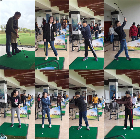 經過半小時的專業教練培訓,大家都清楚了高爾夫的起源及動作要領和注意事項,隨后開始握桿運動了。起初大家都打不著球,通過不斷地練習,總算能摸著球了。雖然飛得不遠,但是進步很大。
