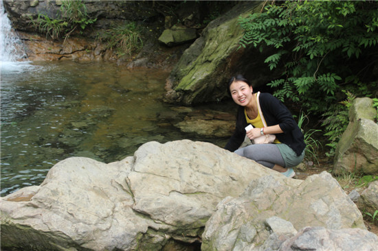 清澈的水邊,優勝如花似玉的美女,燦爛地笑著。
