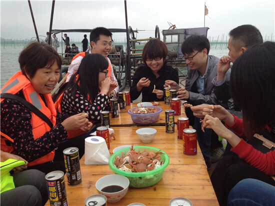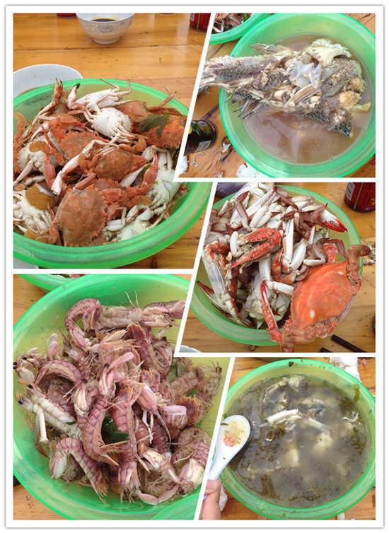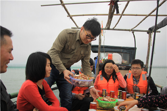 任船身隨浪搖擺,享涼爽海風吹拂,馬達聲里,陸地逐漸退遠,極目遠眺,前方海天一色,煙雨濛濛。殷師傅為大家講起這里的人文地理、海鮮趣聞如數家珍,大家也聽得出神。船老大在大家的大呼小叫中嫻熟地收網捕魚,蝦兵蟹將在網籠中活蹦亂跳。大家賞海景品海鮮,其樂融融。