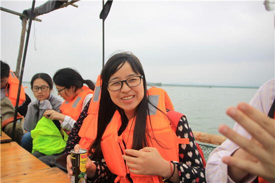 大家興致勃勃地看船老大嫻熟地收網捕魚