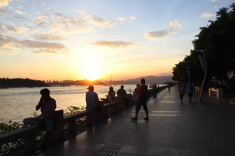 離開鼓浪嶼,大家擠出熙熙攘攘的人群,夕陽下的鼓浪嶼微波粼粼,蕩漾著游輪的隆隆聲,此時此景特別地美!鼓浪嶼,雖與喧囂近在咫尺,卻獨守一份難得的靜謐。