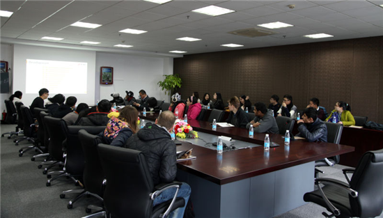 隨后,留學生一行參觀了我集團辦公區域。在集團大會議室,我們簡要介紹了集團發展情況。聽完介紹,留學生們對我們集團有了更全面的了解,認為集團是一家很有實力的國際貿易企業,有留學生當場希望今后有機會能來集團實習。