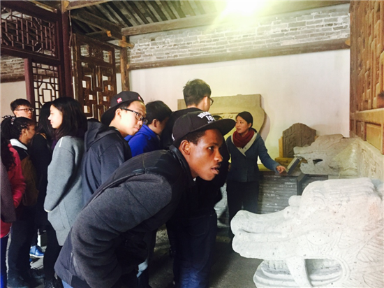參觀結束后,大家驅車前往寧波耕澤院石刻博物館。該博物館占地面積7畝,收藏了7500多件宋朝到民國時期的石雕真品,極具中國文化特色,無不給來自異國的留學生們留下深刻印象。