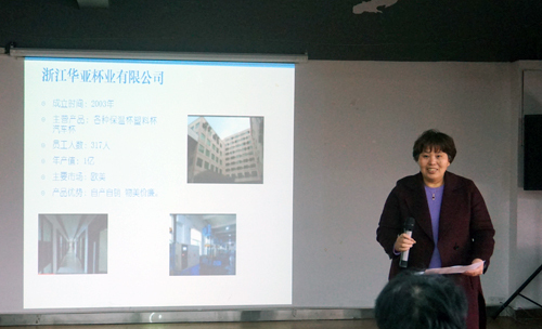 浙江華亞杯業公司專注國內市場的真空保溫器皿研發和制造,負責人朱秋嬋在會上重點介紹了幾款近期暢銷的保溫杯生產工藝和競爭優勢。