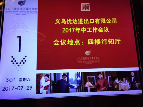 7月29日下午兩點,我司在義烏三鼎開元名都大酒店行知廳召開了年中工作會議,會議由方保軍總經理主持,優達全體人員參加了本次會議。