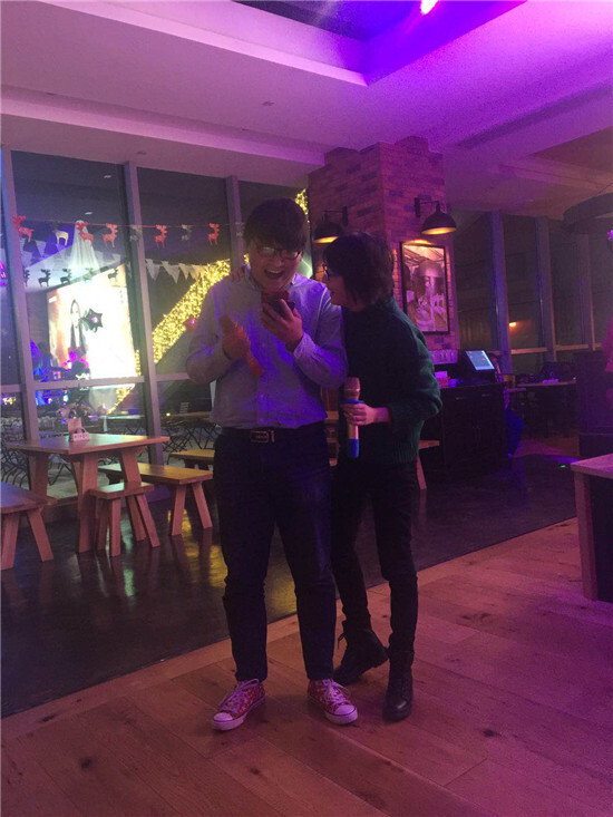 大家還一起合唱《朋友》、《我相信》等曲目,還有可愛(ài)的小伙伴借著《月亮代表我的心》現(xiàn)場(chǎng)表白,一波又一波的驚喜將氣氛層層點(diǎn)燃。《大瞎話》、《終極密碼》兩大經(jīng)典游戲high翻全場(chǎng),懲罰項(xiàng)目歇斯底里,驚現(xiàn)“女女表白”、“男版瑪麗蓮夢(mèng)露”、還有兩次被女生拒絕還堅(jiān)持詠唱駱賓王的《詠鵝》的深情王子。大家紛紛拿起手機(jī),拍照、錄像,記錄這些珍貴的畫面。