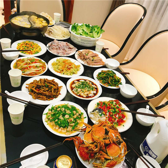 慵懶的午后,姑娘們在別墅內的卡拉OK館盡情展示歌喉,隨行的三個小朋友俏皮地在一旁玩起了躲貓貓,廚房內賢惠的人兒們說說笑笑的在為晚上的大餐做準備工作,誠摯的笑容縈繞在每個人的笑臉上。美好的時光總是讓人在不經意間度過,不一會兒就到了本次活動最重要的環(huán)節(jié),那就是解決民生大計!鴻運當頭,吉祥三寶,瑪瑙翡翠,海上絲綢之路,五星紅旗,六月黃,春之歌。。。。。。伴隨著一個個美好的寓意,一道道精致的色味俱佳的菜肴,在燈光下泛出點點油光,撲鼻的香味陣陣襲來,不禁令人食指大動,忍不住大快朵頤。要問餐桌禮儀,菇涼們早已迫不及待地下箸,而晚宴后超長時間的消食時刻更是對光盤行動的完美續(xù)集。