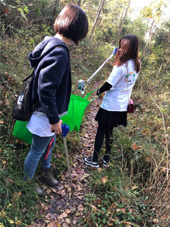 一個拐角,一條林道,鋪滿著一地綠黃相間的秋色,含蓄奔放但不張揚;一個白色塑料袋,一罐廢棄鋁制可樂瓶,或深或淺地落在有著百年古樹歷史的林間。油彩的筆尖,深深淺淺的細細涂鴉,描繪著晴江岸的色彩斑斕;一件小白T,一枚夾子,一個綠色環保袋,賽爾拾垃圾小分隊踏著古道,維護著晴江岸的美麗風景。