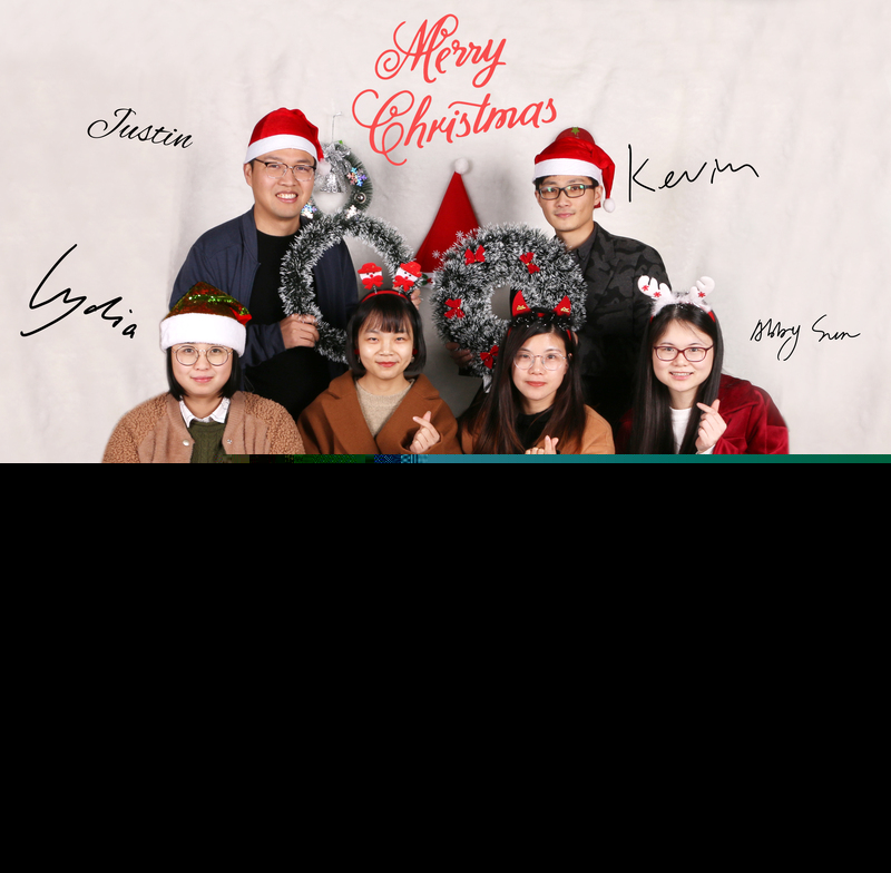 我們利用圣誕花環(huán)、圣誕樹、圣誕襪、圣誕擺件等各類節(jié)日裝飾品,以白色絨布為背景,打造了一個(gè)溫暖喜慶的布景。隨后按照公司各個(gè)小組的順序,以重要客戶為對象,進(jìn)行不同的序列組合拍攝團(tuán)體照。另外,我們還收集了每一位業(yè)務(wù)員的英文電子簽名,標(biāo)注在每個(gè)人照片旁邊,以便給客戶留下更深刻的印象。拍完照之后,我們在上面加上了祝福語和親筆電子簽名,最后制作出了一張張別出心裁的精美圣誕節(jié)專屬賀卡。