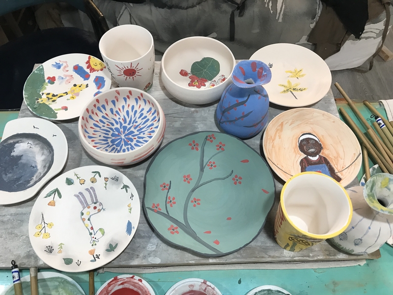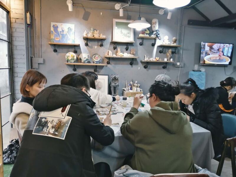 經過兩個小時的奮戰,大家終于圓滿完成了自己的作品,喜悅之情溢于言表,紛紛拍照紀念。縱覽陶藝室,大家的作品風格都別具特色,創意無限,有復古雅致風、卡通動漫風、唯美文藝風、抽象藝術風,看得人眼花繚亂。上完色后大家便滿懷期待,等待各自的陶藝作品烤制出爐,畢竟那是全世界獨一無二的喔。