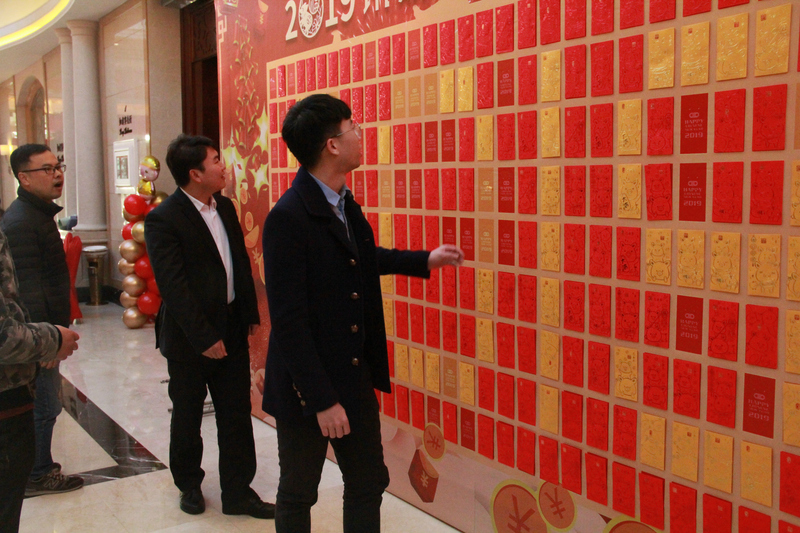 各分會場年會陸續結束,大家前往晚宴現場簽到。晚宴會場門口立著一個由270個進場紅包組成的巨型紅包墻,經過紅包墻,每人抽取一份屬于自己的幸運紅包,場面十分喜慶熱鬧。