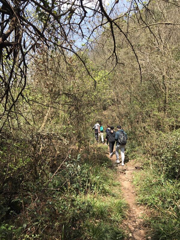 沿途都是土路,路面只有半米寬,側邊沒有任何防護,低頭可見山谷里的樹郁郁蔥蔥。之后是古道,石頭不規則地躺著。可能是因為前晚剛下過雨,石面有些滑,不過這可難不倒我們,大家互相攙扶,相互鼓勵著走完了全程。