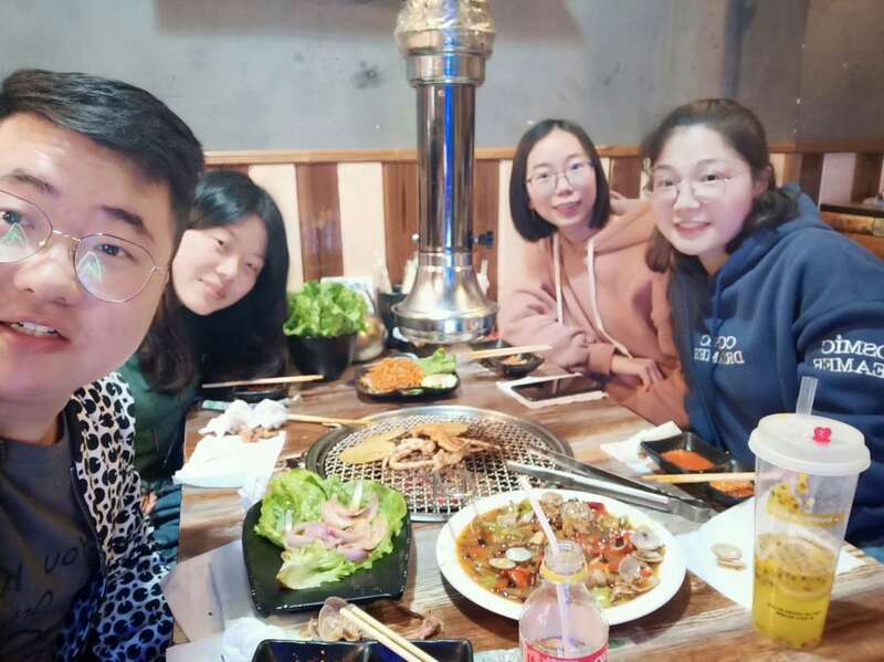 秉承著聚餐必須要吃肉的原則,這次我們選擇了滋啦滋啦的烤肉大餐,秘制招牌牛肉、原汁五花肉、原味魷魚,再包上一片生菜,味道簡直棒呆了!大家邊吃邊聊生活和工作,時間很快就過去了。