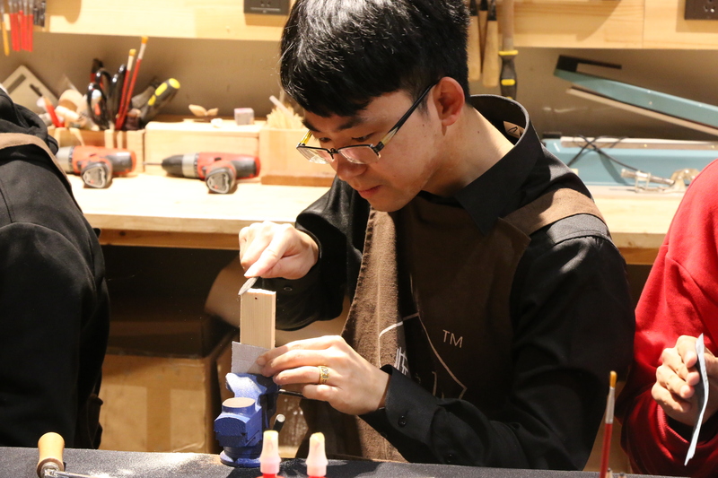 這是一個明媚的上午,我們齊聚在一家充滿文藝氣息的小店里,店里擺設(shè)著各式各樣的手工雕刻作品。大家各自選好了想要做的作品,然后穿上了美美的圍裙,這一刻,請叫我們“傲嬌的小木匠”。整個制作過程中,大家耐心細(xì)心地打磨著、探討著、組裝著。在這歡聲笑語的氣氛中,大家暫時忘掉了煩惱,專心致志地完成自己的作品。完成作品之后便是愉快的午餐時間,大家互相聊著工作和生活中的點滴趣事。