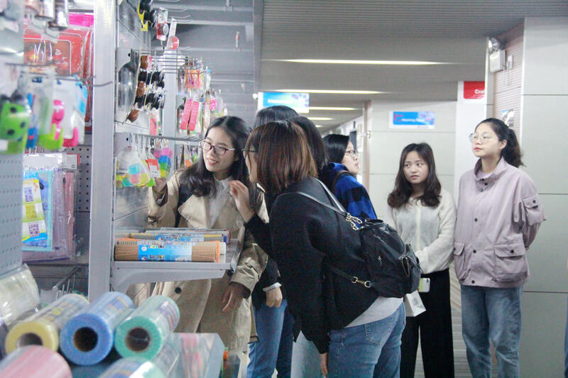 陸書記一行到達集團義烏運營中心后,先行參觀了集團的產品展示中心和辦公環境,并對集團的辦公環境和產品展示中心琳瑯滿目的產品贊不絕口。隨后一行人在會議室進行了交流和分享。在了解了集團的發展歷程和公司概況之后,陸書記認為賽爾集團的發展空間、企業文化和學習平臺對實習生和畢業生都有很大的提升和進步。了解到越秀的學長學姐在集團都發展得不錯,有些甚至已經成為部門的中堅力量,也讓隨行的同學受到了鼓舞。同時陸書記也介紹了學院與單位的“訂單式”培養模式和大學生創業園的孵化工作。