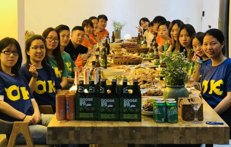 天色漸暗,趁著游戲的余興,大家有條不紊地進行洗菜、切菜,擺盤等,兩位大廚邱總和林葉擼起袖子準備著晚上的大餐。到了晚上9點多,我們一行人終于坐在長桌上,享受著精致的晚餐。