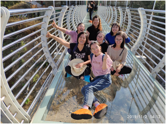 這一天,天氣非常給力,艷陽(yáng)高照又夾雜著絲絲秋風(fēng),大家輕裝上陣相約于義烏赤岸西海龍山風(fēng)景區(qū)。走一走讓人雙腿發(fā)抖的玻璃棧道,蕩一蕩令人毛骨悚然的高空秋千,擺一擺美美的POSE,拍一拍沿途的風(fēng)景,一個(gè)下午好不愜意呀!