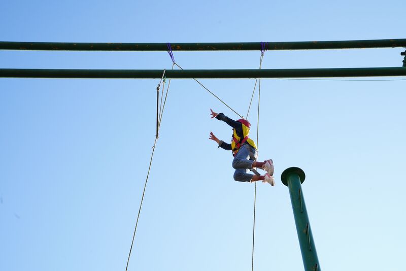 早晨,一聲激昂的哨聲響起,賽爾新人在總教練的指揮下迅速分成6個戰(zhàn)隊。一二!一二!一句句振人心弦的齊聲吶喊;咚咚!咚咚!一聲聲響徹土樓的球體撞擊,我們第一個項目——“鼓動人心”開始了。我們在一次次失敗中總結(jié)自身調(diào)整策略,在一次次彎腰撿球中站直身體擺正位置。隨后開始的驚險倒計時則考驗了我們的流程管理能力和快速協(xié)調(diào)能力。第三個項目是高空抓桿,大家一開始雖然都有些害怕,但最后所有成員都爬上了高柱,無人退縮,這對于一個大團隊來說,是一個多么值得欽佩的成果! 接下去的極速60秒要求每個隊伍必須在60秒內(nèi)破解一個繩圈內(nèi)的30張神秘卡牌,且繩圈內(nèi)只能有一人來觸摸卡牌及繩子,團隊成員只能在圈外幫助圈內(nèi)成員。直到比賽結(jié)束時,教練告訴我們原來規(guī)則是可以打破的,圈內(nèi)成員可以把繩子扯掉,這讓我們意識到突破界限和不墨守成規(guī)有多么的重要。第一天的最后一個項目是用拼接墊來搭建高塔。大家瘋狂地堆高度,但是忘記了建筑材質(zhì)和場地風(fēng)力,這個項目讓我們明白了有時候地基和結(jié)構(gòu)才是成功的關(guān)鍵,一味追求高度和速度只會潰敗涂地。