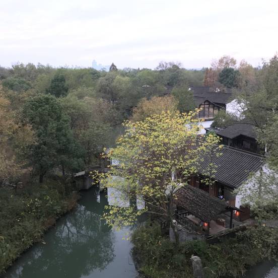 不知不覺就到了午飯時間,大家選擇了一家有當(dāng)?shù)匚兜赖暮紟筒孙埖辏叧赃吜模瑲夥丈鹾谩L铒柖亲雍螅埡笙钞?dāng)然也很重要。我們又上了一處高塔,欣賞到整個西溪濕地的美景。