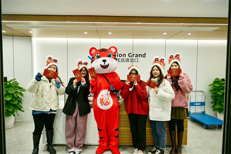 寒冬已過,暖春已來。趁著大地回春的美好時光,每個同事都帶著動力和笑容來到了自己的工位上,開啟虎年征程。突然一只可愛的老虎出現(xiàn)在大家的視線中,眾人紛紛對他投向好奇的目光。他帶著一個小音箱,播放著快樂的歌曲,挨個和大家說新年快樂,并遞上了新年紅包。不少同事和我們“虎虎”合影留念,“虎虎”的出現(xiàn)也是給大家?guī)砹瞬簧贇g聲笑語,即便過了初七,優(yōu)遠的年味一絲都沒有減少。剪短的開工小插曲結(jié)束后,大家也快速進入工作狀態(tài),臉上都寫滿了對新的一年的期待。