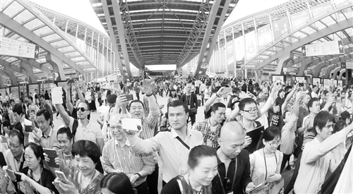 左圖 2014年秋,第117屆廣交會熱鬧非凡。 (資料圖片)