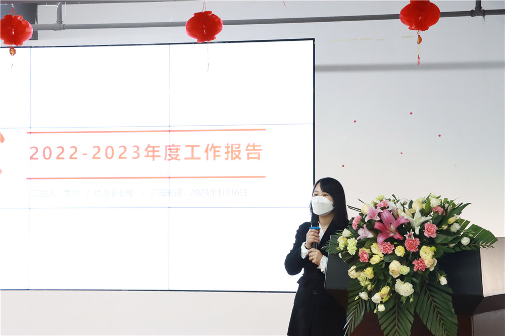 最后,黃麗總進(jìn)行會(huì)議總結(jié)。黃麗總感謝了全體小伙伴一年來(lái)的辛勤付出,交出了2022年的完美答卷,祝賀2022年的晉升和獲優(yōu)人員,希望他們不忘初心,砥礪前行。同時(shí)也希望全體同事能夠保持憂患意識(shí),在完成工作任務(wù)的同時(shí)也要注重個(gè)人的身體健康。祝大家兔年大吉,來(lái)年大展宏“兔”!