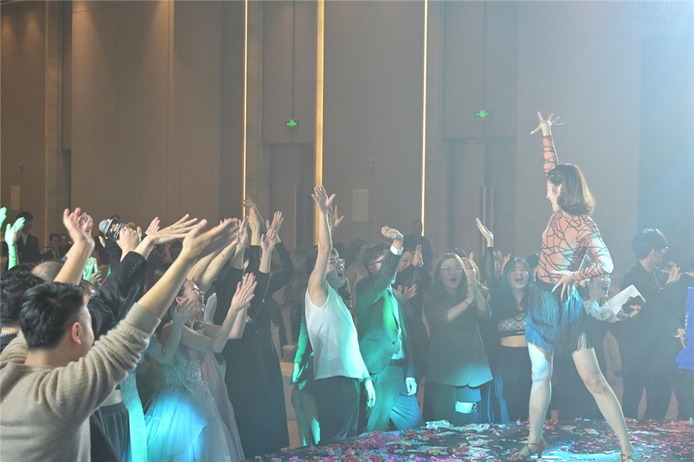 夜色將至,晚會也拉開了序幕。大家身穿晚禮服,女士優雅美麗,男士干練帥氣。演出開始,舞臺劇、音樂劇、舞蹈、唱歌……形式多種多樣,大家各展其長,可謂精彩紛呈。其中,義烏同事的LED發光舞創意十足,最受大家喜愛。節目期間還有讓人激動的抽獎環節,很多小伙伴喜提獎品和紅包。
