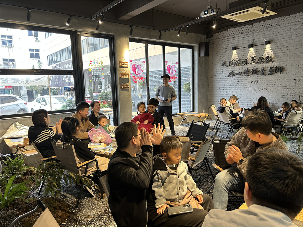 簽到環節,悅讀社為每個到來的小朋友精選準備了一份伴手禮,一盆多肉綠植和一本記事本。先來的小伙伴已經拿起了他們帶來的書籍,開啟了閱讀模式,耐心等待著未到的家庭。隨著最后一戶與會家庭的到來,本次活動正式拉開帷幕。第一環節,義烏悅讀社社長李明陽向大家介紹了悅讀社今年的活動計劃,以及剛剛上線的“馬拉松”計劃。第二環節,小朋友代表所在家庭做了自我介紹,這些小朋友自我介紹時像極了一個個播音小主持。第三環節由參會家庭對親子閱讀進行系統性的經驗分享,包括什么時候讀、讀什么、與誰一起讀等。最后,便是今天活動的正式環節——圍爐煮茶,悅品書香。與會家庭以小圓桌為單位,一邊品著茶、吃著茶點,一邊圍繞親子閱讀議題開始分享交流。