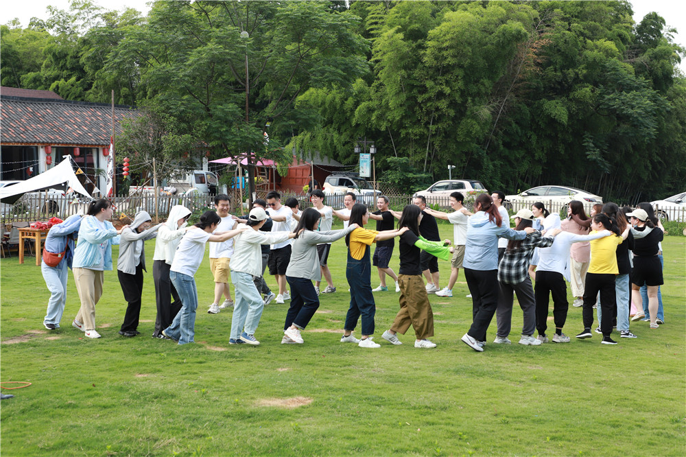一大早,人員到齊,教練就帶著大家一起做熱身運動。隨后,“勇武隊”和“一飛沖天隊”組隊完畢。兩隊分別展示了自己的口號、隊歌和pose,氣氛達到頂峰。Battle必不可少。兩隊就“高山流水”(傳送乒乓球)、“打鼓”(拉鼓打球)以及“大力士”(背人)活動展開了激烈的比拼。通過游戲,大家意識到我們是一個團體,每個人都有不同的思考方式,結合集體智慧才能把事情做到更好。緊張的比拼結束后,大家各自落座,開始自助烤肉,不會烤的同事四處“蹭吃蹭喝”,吃得不亦樂乎。酒足飯飽之后稍作休息,大家開始了游園活動,有玩全地形車的,有玩叢林穿越的,有玩拉胚燒制的,也有圍爐煮茶做永生花團扇的,大家歡聲笑語,不亦樂乎。