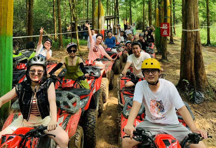 雨后的莫干山帶著點神秘感,郁郁蔥蔥的竹林裹挾著一條蜿蜒小道,沿著一路往前走,就到了我們此次住宿的民宿,有種曲徑通幽處的意境。午飯過后是新鮮刺激的山地越野車,純天然的山地竹林,讓路程十分真實刺激又有挑戰性。在教練的講解和訓練之后,大家開始開車上路。經歷完一段驚險刺激的旅途,大家開始瘋狂愛上這種開酷車賞美景的feel。結束后,大家又體驗了卡丁車和射箭等運動項目,在運動中解壓放松,舒展身心。