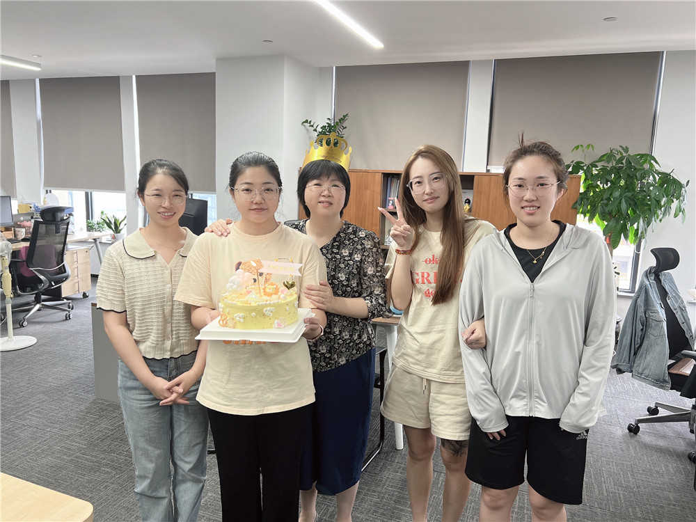 8月22日是中國的傳統情人節——七夕。部門貼心地準備了少女心的小甜點,年輕的妹妹們陸續收到了愛人贈送的鮮花。五個壽星郭云珍、華雷雷、徐久穎、袁夢思、張瑩維興致勃勃地手捧蛋糕,露出笑容。整個部門沉浸在濃濃的甜膩氛圍中,格外的香甜。