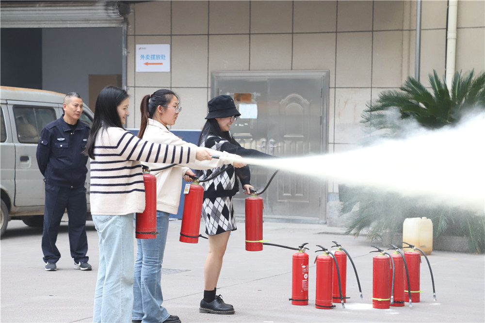 紀春明老師首先通過真實案例講解了火災發生時正確逃生的方法和預防火災的措施,強調了安全用電的重要性,希望大家樹立“安全第一,預防為主”的消防安全意識,在日常生活中要做好預防工作,認真學習消防知識。在現場演練部分,首先模擬了樓道著火,紀春明老師緊急通知員工撤離,大家沿著安全出口的路線,有條不紊地迅速撤離。待全體員工安全撤離到公司停車場后,開始了滅火器演練培訓環節,紀春明老師講解并示范了滅火器的正確使用方法及步驟。最后,參訓人員進行了滅火器使用及滅火演習。
