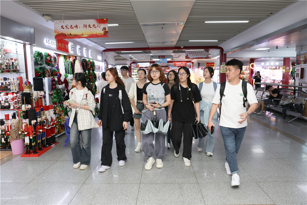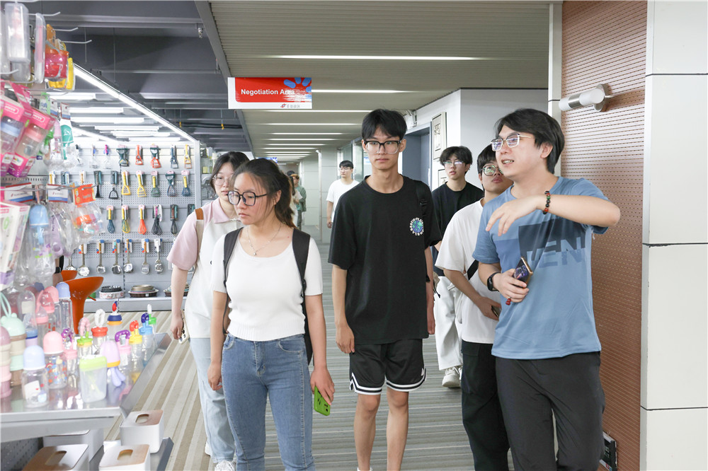 短暫休息片刻后出發(fā)世界最大的小商品城——義烏國際商貿(mào)城,集團帶領(lǐng)同學(xué)和老師們主要參觀了商貿(mào)城一區(qū)和二區(qū)。在逛店鋪的同時,講解人深入介紹了各產(chǎn)品的主要出口國、各國客人對產(chǎn)品的喜愛偏好等。現(xiàn)場還針對現(xiàn)場同學(xué)們關(guān)于出口貨物體積計算單位等方面的疑問一一解答,讓同學(xué)們零距離感知外貿(mào)工作氛圍。