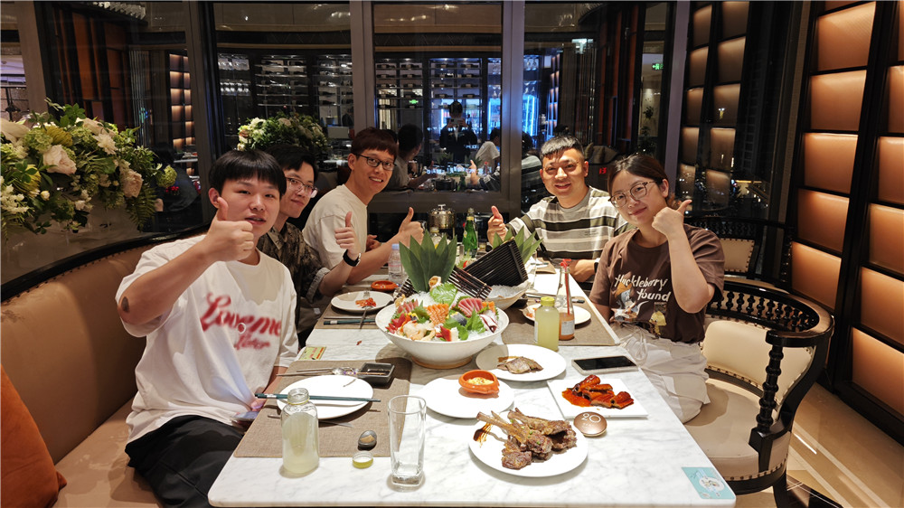 新鮮的三文魚和鰲蝦是這次晚餐的主角。三文魚以其豐富的營養價值和獨特的口感著稱,而蝦則以其鮮美的口感和高蛋白質含量受到人們的喜愛。在精心挑選后,這些優質的食材被送到了我們的餐桌之上。在輕松愉快的氛圍中,我們圍坐在餐桌旁,開始享用這份精心準備的海鮮大餐。三文魚的口感細膩,每一口都能讓人感受到來自大海的饋贈。而蝦的鮮美則讓人回味無窮,每一口都是對味蕾的極致滿足。在享受美食的同時,我們也借此機會進行了深入的交流,大家分享著工作經驗,亦或是閑聊生活趣事。