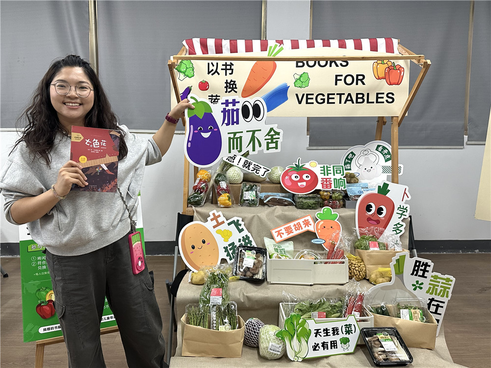 我們用沉睡的舊書(shū)喚醒新鮮的蔬菜,綠綠的菜苗,飽滿的種子,讓書(shū)香喚醒春天的綠意!