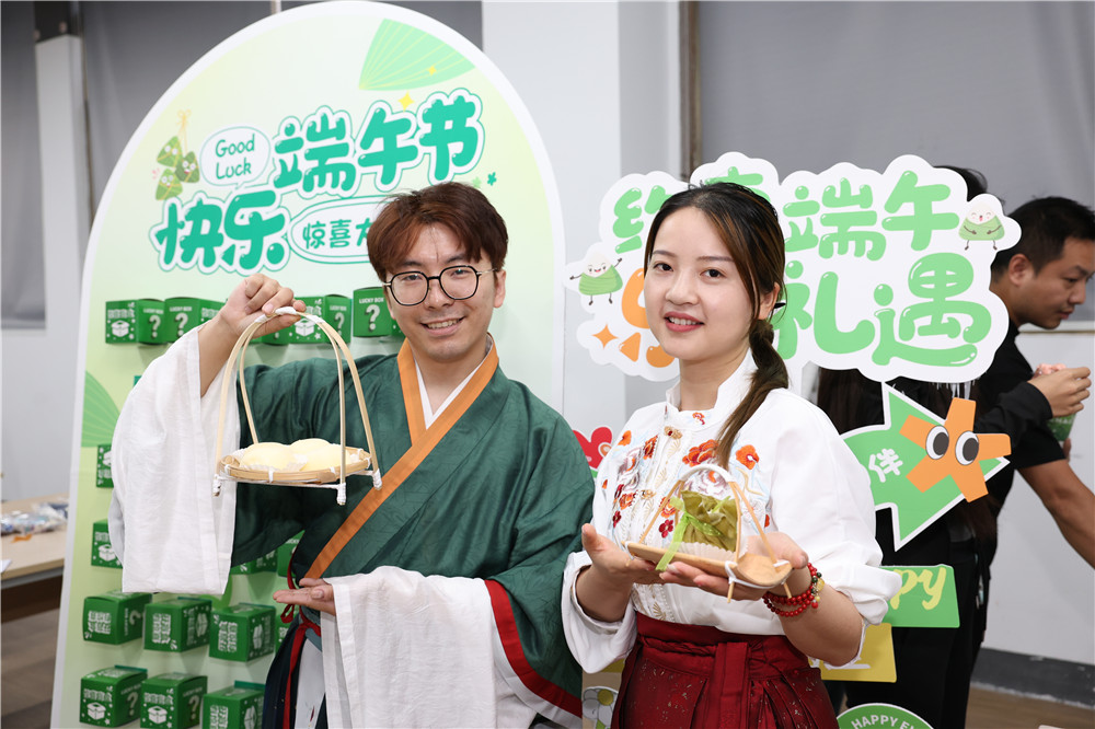 活動重磅推出“端午節快樂驚喜大派送”,三只松鼠大禮包、茶顏悅色限定款等隱藏彩蛋引發陣陣歡呼。現場更化身“粽藝樂園”,在歡聲笑語中感受文化魅力。